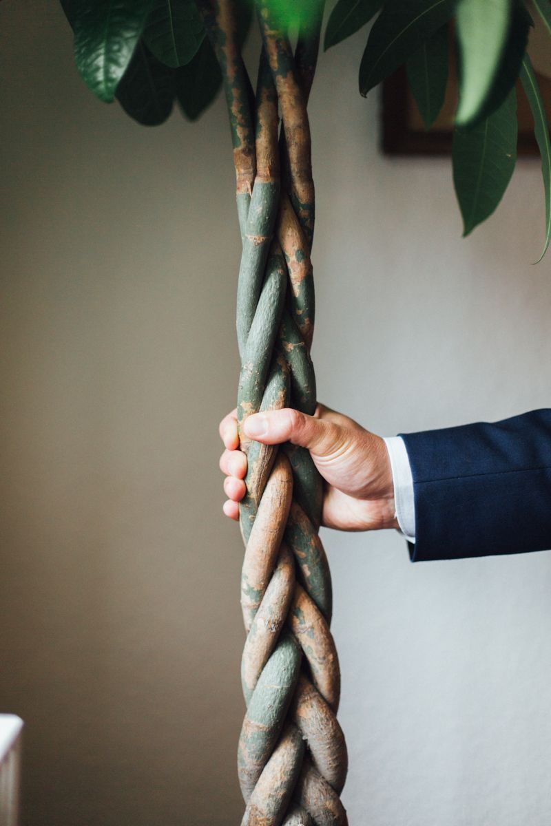“Ik ben eigenlijk jaloers op die vlecht, zo weelderig… In feite is zo een Pachira geen één plant, maar worden die geplant met verschillende planten tegelijk en naarmate die groeien worden ze in elkaar gevlochten. Snel opgezocht nu jullie hier zijn.”